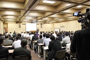 ![]() 八重洲で開催した荷主獲得セミナーには、 およそ90名が参加した。 |