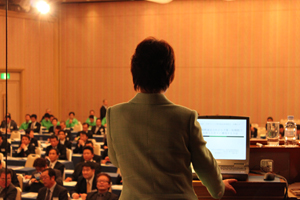 ![]() セミナーの休憩中も席に座っている人はいない。 大声で話さないと聞こえないほどの名刺交換合戦に。 |