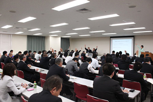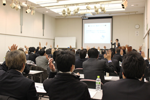 ![]() 北は北海道から、南は沖縄まで、参加者の ほとんどがトラック20台以下の運送会社の経営者。 |
