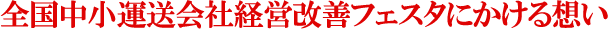 運送フェスタは、1年に1度、全国から真剣な中小運送会社の経営者が集結する場です。 ぜひあなたも、フェスタの会場に足を運んで、あなたと同じ悩みを抱え、あなたと同じように会社の経営のこと、業界の未来のことを考えている、同志と出会って下さい。あなたの力を貸して下さい。