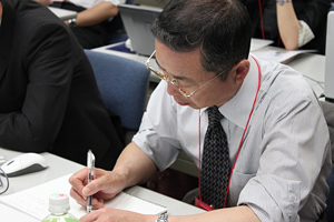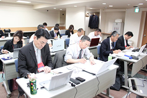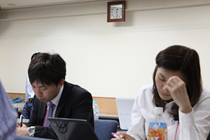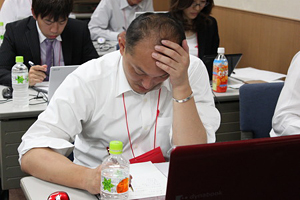 ![]() 深夜を過ぎてもワークを続ける参加者たち |