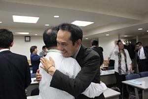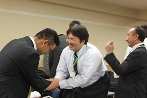 ![]() お互いの健闘をたたえ合います |